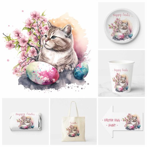 Easter Floral Watercolor CatDesignad av Patricia Santo