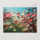 Blommar med fyrkantiga körsbärsbilder på blåvykort vykort