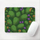 Blommar opuntia på mörk grönt musmatta