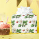 Vattenfärgning av jordgubbar och blommar på vit bakgrund.
