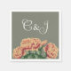 Napkins i elegant rosa blommar cactus bröllop har parets ursprungliga brev i tunt vitt skript. Bakgrunden är en grönt för ökenspridning.