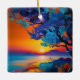 Blommar Träd vid Sjö vid Soluppgången Julgransprydnad Keramik