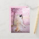 Ett vackert foto av en norsk buhund i en körsbärspark i träd. Ett vykort för var och en som kärlek Japan, körsbärs-blommar eller hundar.