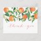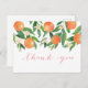Orangar med saftig vattenfärg och modern kalligrafi dekorerar denna vykortsdesign som skulle vara perfekt för ekonomiskt tack för kort för baby eller möhippa.