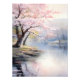 Den här serenmålningen fångar körsbärsbilarnas skönhet i fullt-blomman av ett stillastående sjö. De ömtåliga rosa blommorna och lugnen vatten skapar en lugn scen som säkerligen kommer att ge fred och avslappning till vilket rum som helst.