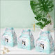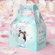 En söt kokeshi doll i en rosa turkos kimono under en dammig rosa cherry blommar träd på turkos med bokeh bakgrund. Med en anpassningsbar tack för babyduschtexten. Utformningen av japanska chibi för din flickdusch tack vare dina gåvor.