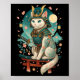 Blommarna Samurai Moonlight för japanska Cat Cherr Poster