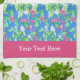 Ett söt Kitchen Towel (Tea Towel) som du kan anpassa, med en mönster av grå vit Mock Orange Blommar och skarp rosa Weigela på himlar blå bakgrund. Utformningen kommer från en handmålad vattenfärg av Judy Adamson. Du kan helt enkelt radera texten om du vill.
