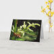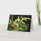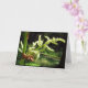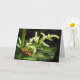 Överför en vän ett särskiljande kort som presenterar rabarberblommor. Tjocka gröna löneförhöjningar för en rabarberstem till och med vänster sida av ramen. Två grenar med stjälkar av den mycket små bleken - gult - gröntblommor metar diagonalt upp till de högra stunderna som två kort stjälkar av knoppar som fästas till den huvudsakliga stemen, pekar till det vänstert av ramen för ett trevligt compositional balanserar. Ett brunt papery löv omger fogar ihop av de tunna grenarna till den huvudsakliga stemen. En andra rödaktig-brunt lövhängningar uppifrån av ramen längs stemen.