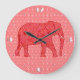Digitalgrafik i blandat mönster från en rikligt skönmålad elefant mot en arabesque med tippad bakgrund - Flower mönster i skuggor av djup röd till korallröd med korallröd och vit bakgrund