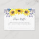 Släng de här petitkorten i dina barnduschinbjudningar för att be gästerna att ta med sig blöjor för att få en chans att vinna ett pris. chicen i land har ett kluster av vattenfärgade solblommor i gult, små marinblå och lila knoppar och grönt löv som matchar vår inbjudan till flödesfält. En söt dikt förklarar konceptet med och begäran om en mer lättläst raffel och kan ändras till kostym efter dina behov.