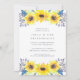 Våra blommor- och blomsterfältslunchinbjudningar omger din lunchdusch eller brunchdusch-information med kluster av gult vattenfärgsolblommor, blå och lila knoppar och gröntens löv. Ett sött val för sommar- eller höstbrudar i rustiska utomhus- eller land-miljöer.