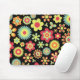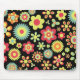 En attraktiv blommig design med färgglada stiliserade blommor på svart bakgrund, designen har också en subtil pappersstruktur.