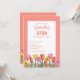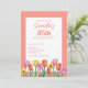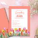 Vacker akvarellillustration av orange, rosa och gula tulpaner på vit bakgrund för vårtema födelsedagsfest.