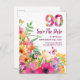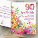 Blommig 90-årsdag Spara datumet, Elegant 90- Tillkännagivandekort.