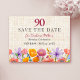 Blommig 90-årsdag Spara datumet - Trädgårdsfest Meddelande Vykort