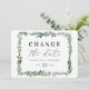 bladig akvarell blomstergemenskap ändra datum kort. Med vackra akvarellblad och modern fet typ är denna ändring av datumet inbjudan precis på modet och perfekt för alla säsonger. Del av en bröllopsserie
