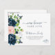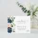 Eleganta blommor nytt hem samma kärlek flyttmeddelande vykort med en vacker mörk midnattsnavelblå och rosafärgad pion botanisk bukett med grönska bladverk och ett chic modernt handskrivet kalligrafi manus.