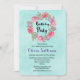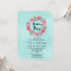 En söt och stilren födelsedagsinbjudan. En vacker botanisk illustration med en cirkulär krans av vackra akvarellblommor i rosa och lila med gröna blad emellan. Den blomsterrika designen består av rosa pioner och lila anemone. Bakgrunden är en mjuk mintgrön akvarellstruktur.