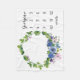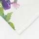 En söt och feminint babyfilt med en botanisk krans med blå, lila, violetta och rosa blommor.
