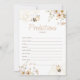 Våra prediktionskort för baby shower med blomtema och honungsbin är ett förtjusande tillägg till din fest. Med charmerande design av honungsbin och blommor uppmanas gästerna att göra sina förutsägelser om barnets födelsedatum, vikt och andra roliga detaljer. Lägg ut korten på baby shower-festen tillsammans med pennor och uppmana gästerna att fylla i dem. Samla in korten efter festen och spara dem som en kär minnesgåva från detta speciella tillfälle.