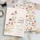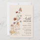 Denna stilrena bröllopsdusch-inbjudan har en vacker handmålad akvarellfjäril och vilda blommor arrangerade som en vacker bukett. Baksidan har ett matchande mönster. Hitta matchande föremål i Boho Wildflower Bridal Shower Collection.