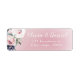 Romantiska akvarell botaniska blommor och grönska i mjuk rosa och marinblå, fina returadressetiketter för modern bröllop, romantisk bröllop och botanisk trädgård bröllop.