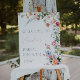 Välkomna era gäster med stil med denna eleganta blommiga välkomstskylt för bröllopsfest, med ömtåliga akvarellblommor i mjuka nyanseringar av rosa, korall och blå toner. Perfekt för vår- eller trädgårdsinspirerade fester, denna anpassningsbara skylt lägger till en personlig touch till er firande medan den sätter en varm och sofistikerad ton från det ögonblick gästerna anländer.
