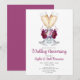 Vackra akvarell champagneglas och rosa burgunderblommor bröllopsjubileum fest inbjudan. Stilig och snygg. Enhetlig burgunderfärg på baksidan. Jubileumstost tema.