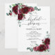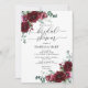 Handmålad vattenfärg burgunderröd blommig bröllopsinbjudan. Du kan anpassa texten, typsnittet, färgen och storleken på framsidan och baksidan av inbjudan. Denna inbjudan är en del av en komplett brölloppsserie med matchande brevpapper.