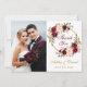 Blommig Burgunderkrans Bröllopsfoto Tack Kort