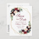 Blommig Burgundy Blå Guld Ram Spara Datum Meddelande Vykort
