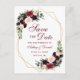 Modern Elegant, Akvarell Burgundy Marsala Blå Blommig, Guld Geometrisk Ram, Spara Datum Förlovningskort