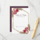 Chic Cassis Purple, elegant och formell Nyförlova önskningar & Råd-funktioner romantiska blomsterbröllop vattenfärg som visas i lummig grönska på en krispig vit bakgrund. En gnistrande gyllene geometrisk kristallformad ram ger en trendig touch. Traditionell, klassisk formulering ger tidlös sofistikation. Personifiera bröllopsdesign med dina detaljer i elegant lila cassis-bokstäver och skript. Baksidan av kortet är en enkel matchande lila cassis-färg.