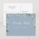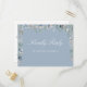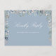 En elegant sångförfrågan RSVP-kort med blomstergrönska och chic typografi på en dammig blå bakgrund. Baksidan visar dina detaljer och en rolig gäst sångförfrågan. Designad av Thisisnotme©