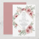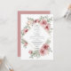 En modern stilfull bröllopsinbjudan med vackra rosor och elegant typografi med en dammig rosa bakgrund på baksidan. Designad av Thisisnotme©