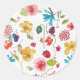 Detta är en originell akvarell av Kristina Anderson, tryckt på en rund dekal. Lättsam och ljus, blommor och bär.