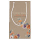 Denna personliga blomsterhandlarens presentpåse utstrålar en delikat och konstnärlig charm, som perfekt antyder det vackra i blomsterarrangemang. Bakgrunden påminner om kraftpapper, likt naturligt papper eller kanske en subtilt åldrad duk, vilket ger en varm och organisk grund.