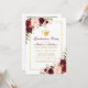 Vattenfärg Burgunder Marsala och Guld Blommig Examensfest Inbjudningskort - Guld Ram - Foto på baksidan