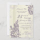 Inbjudningskort för 25-års bröllopsjubileum med elegant beige och lila blommönster, delikat och formellt. Kan anpassas med dina festspecifikationer.