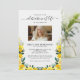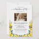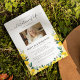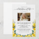 Elegant inbjudan till firande av livets begravning med foto av den person som hedras, rustika gula akvarellblommor i trädgården och en modern minnesgudstjänstmall som är enkel att anpassa.