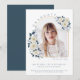 Fira din dotters gymnasieexamen med detta känsliga blommiga foto-meddelande! Detta krispiga vita kartong och blå och elfenbensblommiga design med guldbelysningar kommer att göra hennes speciella dag lysande och kommer att vara en souvenir i många år framöver. Skriv ut och maila till familj och vänner eller ladda ner en digital kopia och dela via text, e-post eller sociala medier.