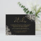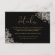 Detta eleganta svarta och gyllene blomrosor gotiska bröllopsinformationskort kan anpassas med din information i chic typografi och din QR-kod på baksidan. Designad av Thisisnotme©