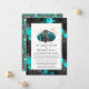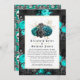 Turkos, turkos, svart och guld gotisk reducerad bröllopsgästlista inbjudan med rosor och ett utsmyckat dödskalle mönster. I dessa osäkra tider kan det hända att du måste hålla ett mindre bröllop än vad som ursprungligen planerats. Detta annonskort tar bort det pinsamma och tar en belastning från ditt sinne! Du kan dessutom ge ett alternativ att gå med i en virtuell ceremoni.
