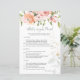 Bebis Shower Lek - Vad Har Du På Din Telefon. Denna design har en akvarellillustration av aprikos rosa rosor och grönska löv.