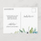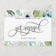 Nyligen blivit förlovad? Grattis! Dela dina fantastiska nyheter med familj och vänner med detta eleganta förlovningskort! Underbar design med handmålad akvarellblommig bakgrund med blommor och blad i vitt, dammigt blått och gröna toner, med en vit sektion i mitten med era namn och frasen "Blev förlovade" i vacker handskriven kalligrafi. Möjlighet att lägga till eget meddelande och extra information (som information om förlovningsfest eller "spara datum"-information) om ni önskar, för att lägga till fler textrader kan ni välja att anpassa ytterligare. Baksidan med handskriven kalligrafi och blomdetalj längst ner.
