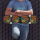 Skateboarddäck med en detaljerad blommig illustrationsdesign. Perfekt för street skating, trick eller som en stilfull och konstnärlig present till skateboardentusiaster.