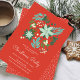 Bjud in gästerna till din julfest med stil med våra moderna festliga jul blomster högtidliga fest inbjudningar. Fest inbjudningarna har vackra handmålade blommor i ett traditionellt klassiskt rött och grönt färgschema. Personalisera inbjudningarna genom att lägga till din fest detaljer. Baksidan har ett rött med vita prickar mönster. Originalkonst av Caroline Bonne Müller