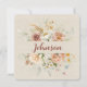 Blommig bukettkant med efternamnet på mjuk burlapbakgrund för vigselceremoni för förnyelse av äktenskapslöften.
