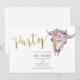 Blommig Ko Skalle Guld Boho FEST Inbjudan